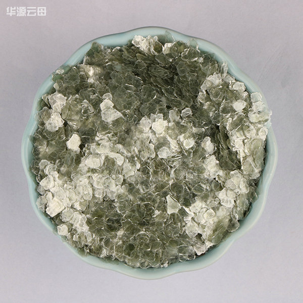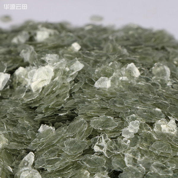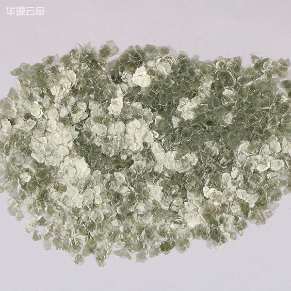 綠云母主要結晶成單斜晶系,晶體呈假六方薄片狀、鱗片狀、板狀,有時呈假六方柱狀。硬度2-3,比重2.70-3.20。云母的折射率隨鐵的含量增高而相應增高,可由低正突起至中正突起。不含鐵的變種,薄片中無色,含鐵愈高時,顏色愈深,同時多色性和吸收性增強。綠云母含鐵量低,是優良的絕緣材料。同時,綠云母色澤艷麗明亮,其中部分帶有天然形成的規則幾何圖形,所以近年來大量用于特種涂料行業。